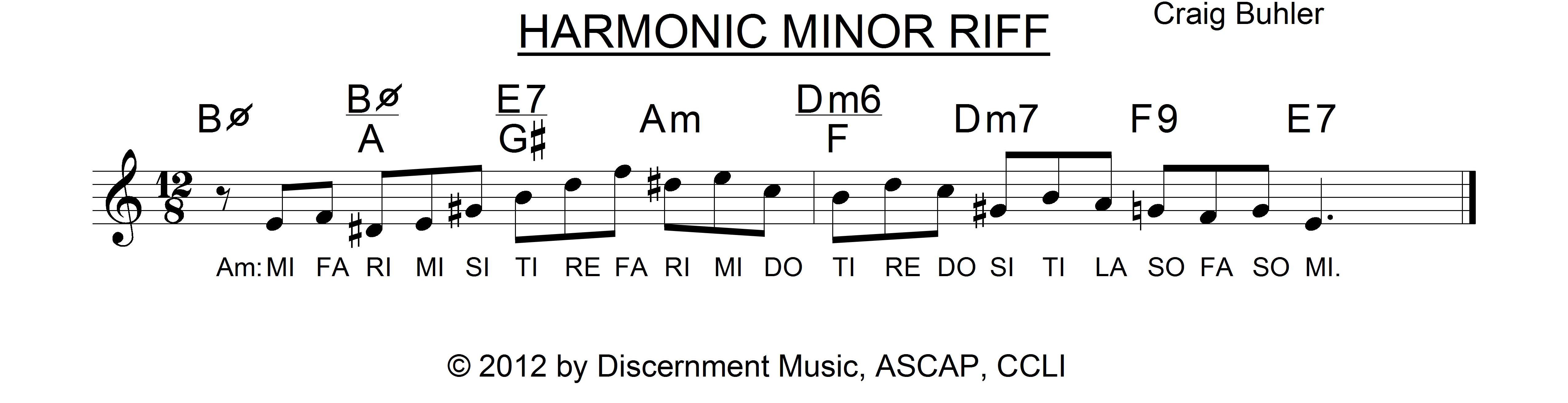 Here is an enjoyable (though challenging) way to practice the harmonic minor scale. It is essential while practicing to keep your imagination engaged. If you practice scales in a dry, machine-like manner, then your performances will be lifeless. If you keep your imagination engaged while perfecting your technique, then your performances will be filled with joy for you and your audience will be captivated by your playing. Try playing this phrase in all 12 keys. I started on middle C and repeated the phrase in all keys up to a starting note of first-space E using a metronome marking of dotted quarter = 110. If you can’t figure it out in the other keys (using the syllables indicated below), contact me by email for a free chart.
