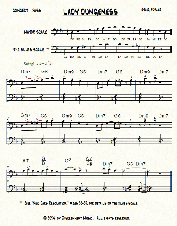 Trombonist Cindy M. asked me to talk about how we use the blues scale to improvise. Comparing it to the major scale, you see the blues scale features three “blues notes,” notes Mozart would never use.