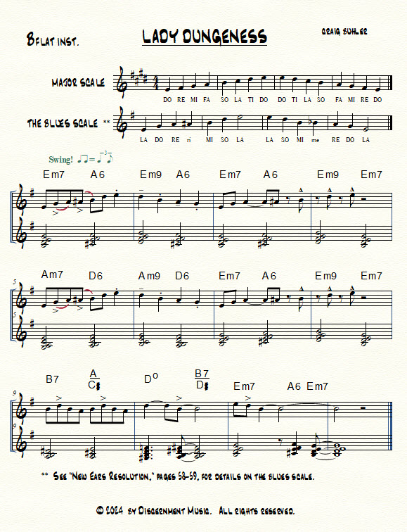 First comes the flat 7, the “happy blues note.” Second is flat 3, the “minor blues note.” Then there’s the “bop flat 5,” (though swing cats prefer to drink theirs!)