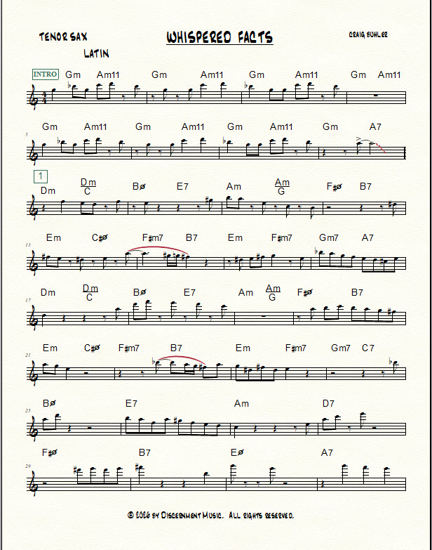 Listen to Craig Buhler’s improvised tenor solo on “Whisper Not” over a salsa groove at 175 BPM.