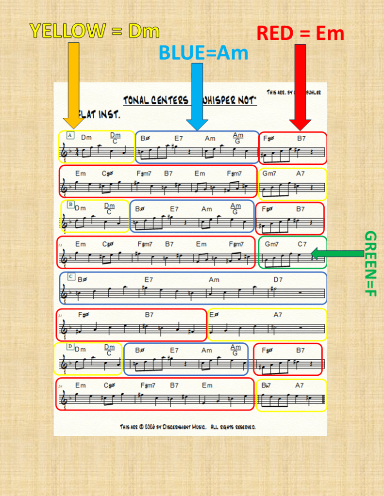 “Whisper Not” enters a new tonal center every few bars, so you’ll need to use different scales to match the “key of the moment.”
